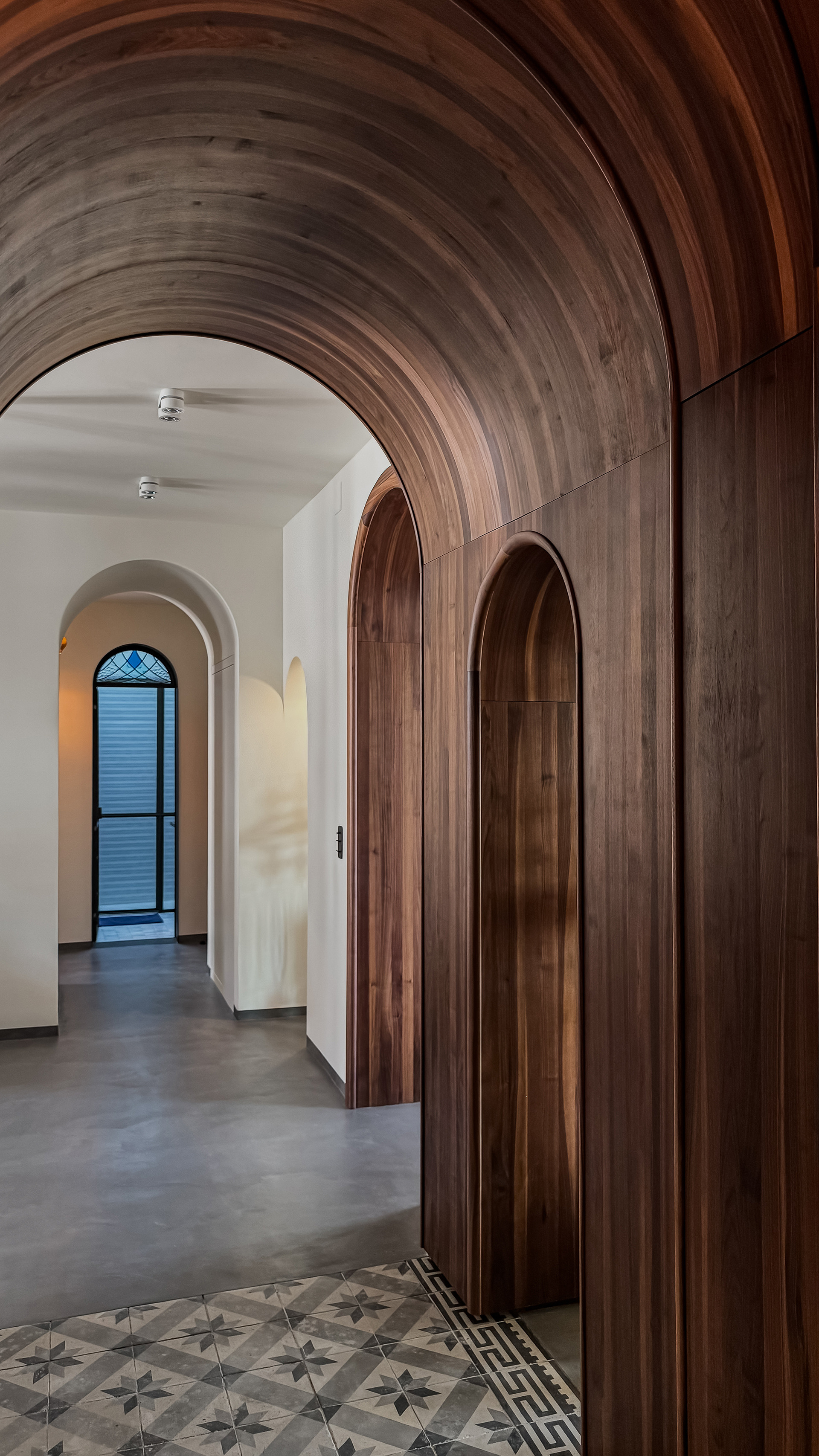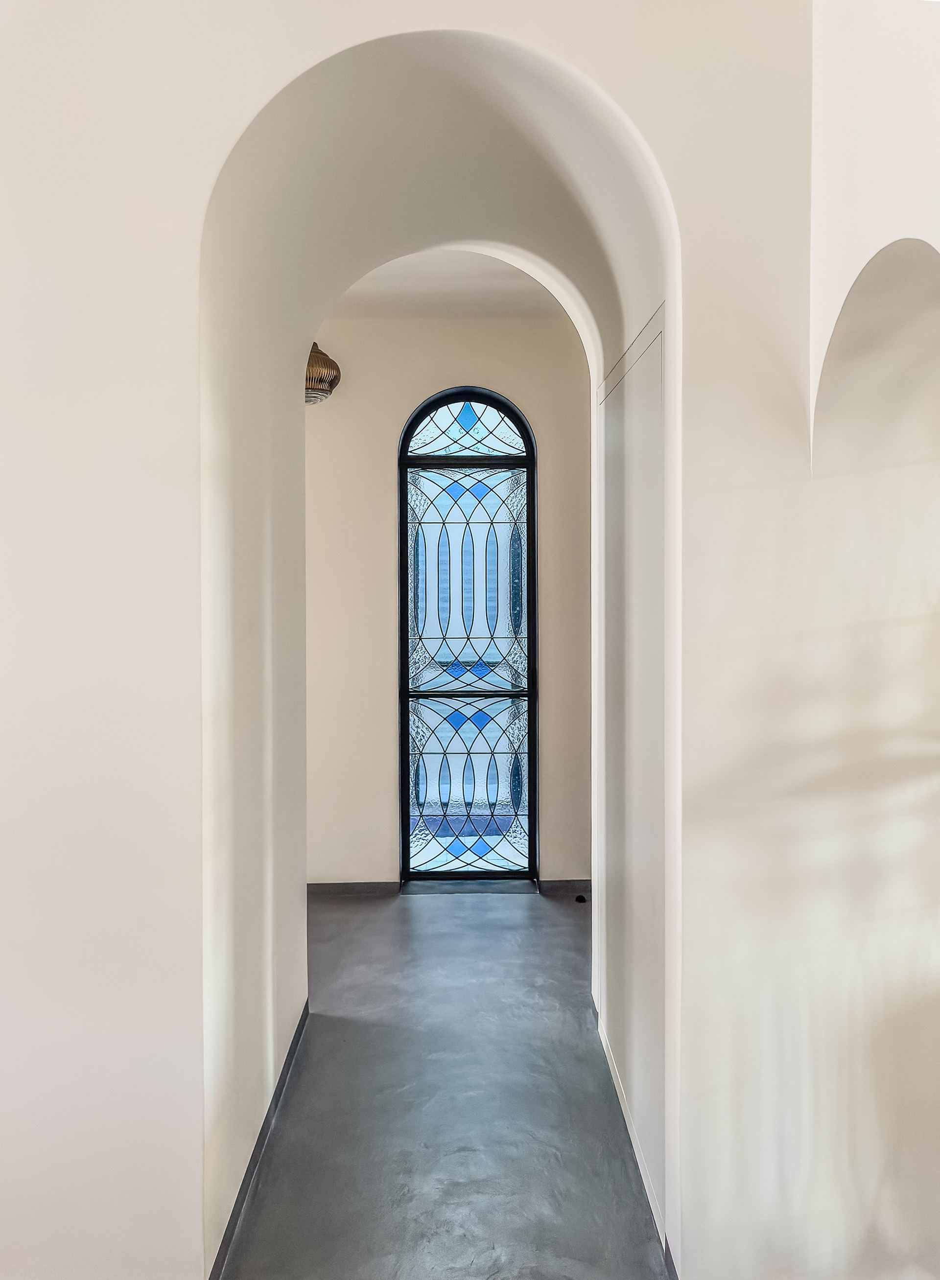 A key aspect of this renovation was the close collaboration with local craftsmen, who contributed exceptional artistry to the project. Master glassmakers created unique stained glass masterpieces (vitraux), infusing the space with rich color and intricate patterns, while skilled woodworkers designed and crafted tailor-made wooden furniture, blending traditional techniques with contemporary functionality.